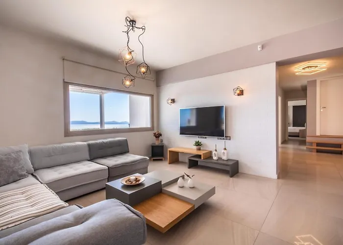 Disfruta de tus vacaciones en Naxos City en el Heaven'S Hill Apartamento. Ideal para quienes buscan una experiencia auténtica, está situado a 7 km de la Playa de Plaka y a alrededor de 2 km de la Puerta de Apolo. Este apartamento de 160 m^2 ofrece vistas al mar y cuenta con una terraza.